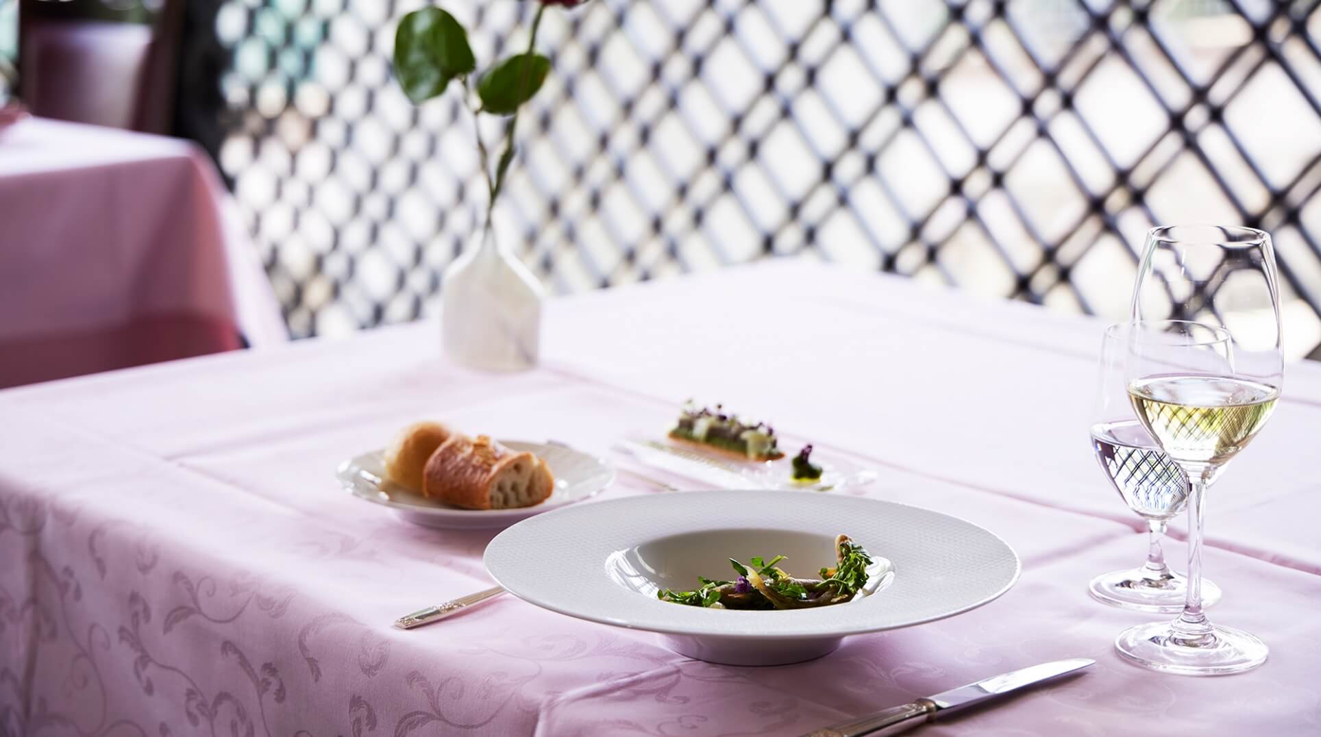 山﨑料理長の「今」の料理に加え、レストラン開設当時からの定番料理、「3種のパイ」「コンソメスープ」「牛肉の煮込みブルギニヨン」「開新堂ゼリー」などもご用意いたしております。ワインは、お料理に合わせた手頃なグラスワインから、通好みのボトルワインまで、多数取り揃えております。